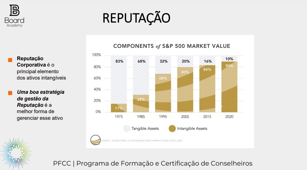 Trata-se de um ativo intangível que se tornou essencial no processo de consolidação dos negócios. De acordo com pesquisas da consultoria americana de propriedade intelectual Ocean Tomo, a part of J.S. Held, os ativos intangíveis – que são resultado do intelecto humano, como reputação, marca e relacionamento com os clientes – equivalem a 90% do valor de mercado das empresas do índice S&P500, as companhias mais valiosas de capital aberto dos Estados Unidos: